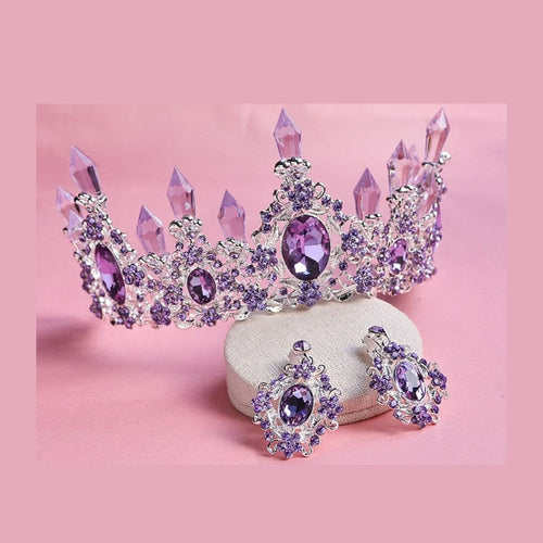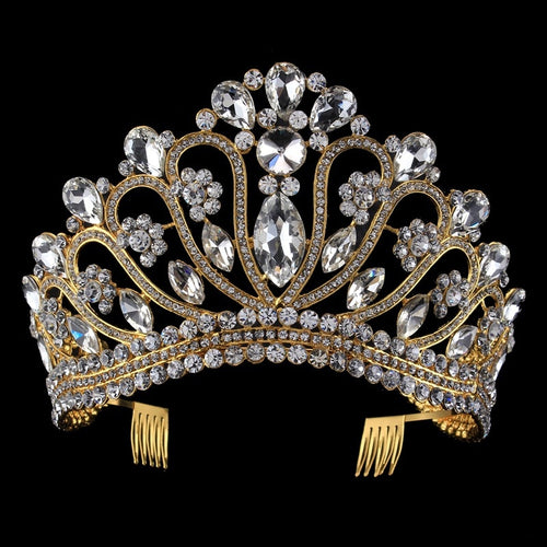 Beautiful collection of Bridal and Quinceañera Crowns - Tiaras for the Bride. Tiaras de Quinceañeras. Some of our jeweled headpieces are available with earrings and necklaces to make your tiara set complete. Many of these pretty larger crowns are great for pageant events or proms for young ladies. We select the most beautiful hair jewels and bring them to you online, to be ordered from the comfort of your home! Brides and Quinceaneras, we invite you to view all the gorgeous hair jewelry, the Mis Quince tiaras, and bride’s headpieces that we have to offer online, at great affordable prices.