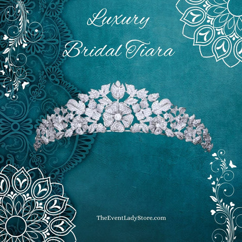 Luxury Floral Bridal Headpiece-Micro-Inlaid Cubic Zircon Wedding Crown-Tiara